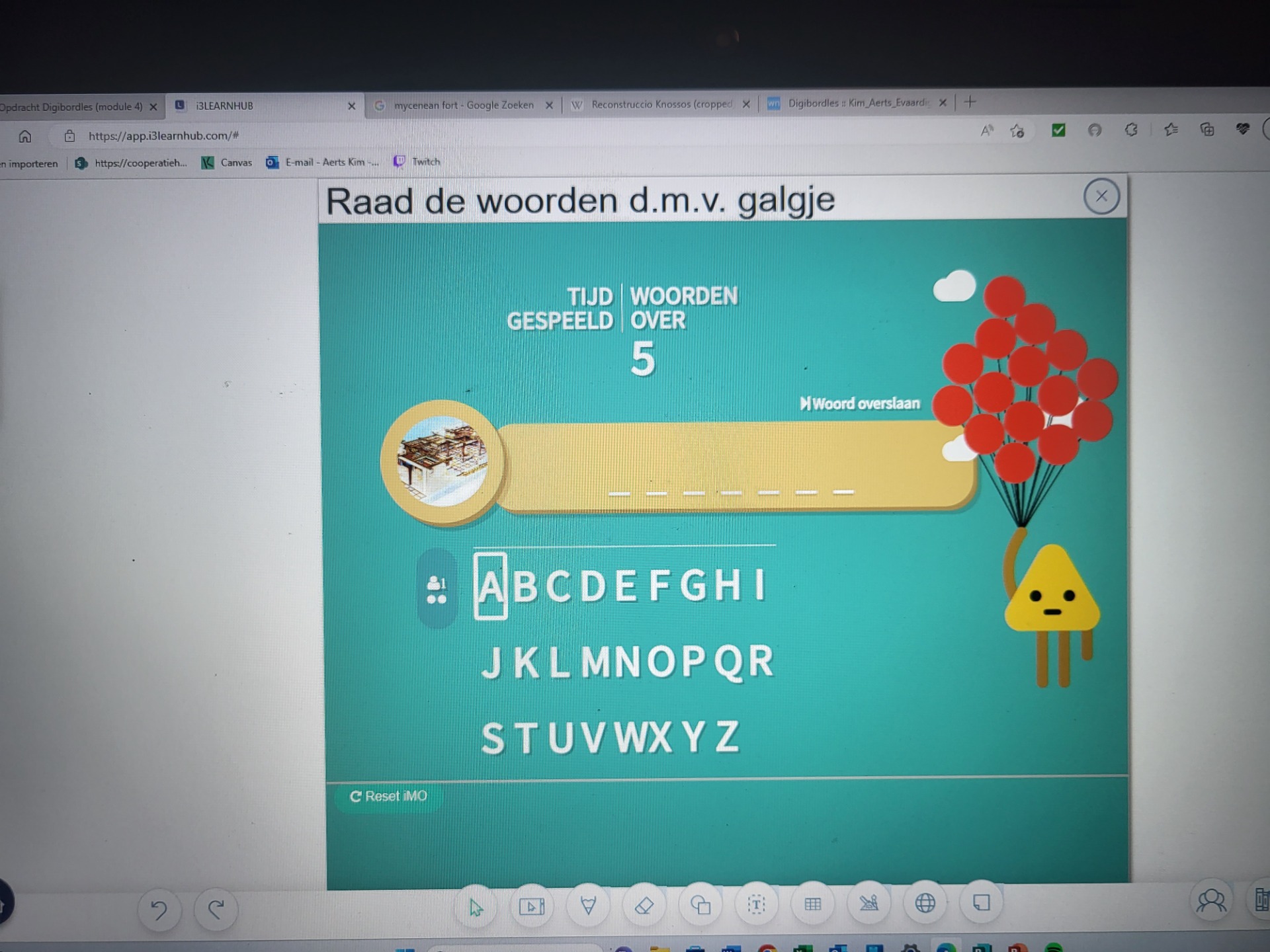 De laatste slide is galgje met wat eindtermbegrippen en belangrijke kenmerken van de culturen zodat ze de herhalingsoefeningen leuk en een beetje competitief kunnen afsluiten.